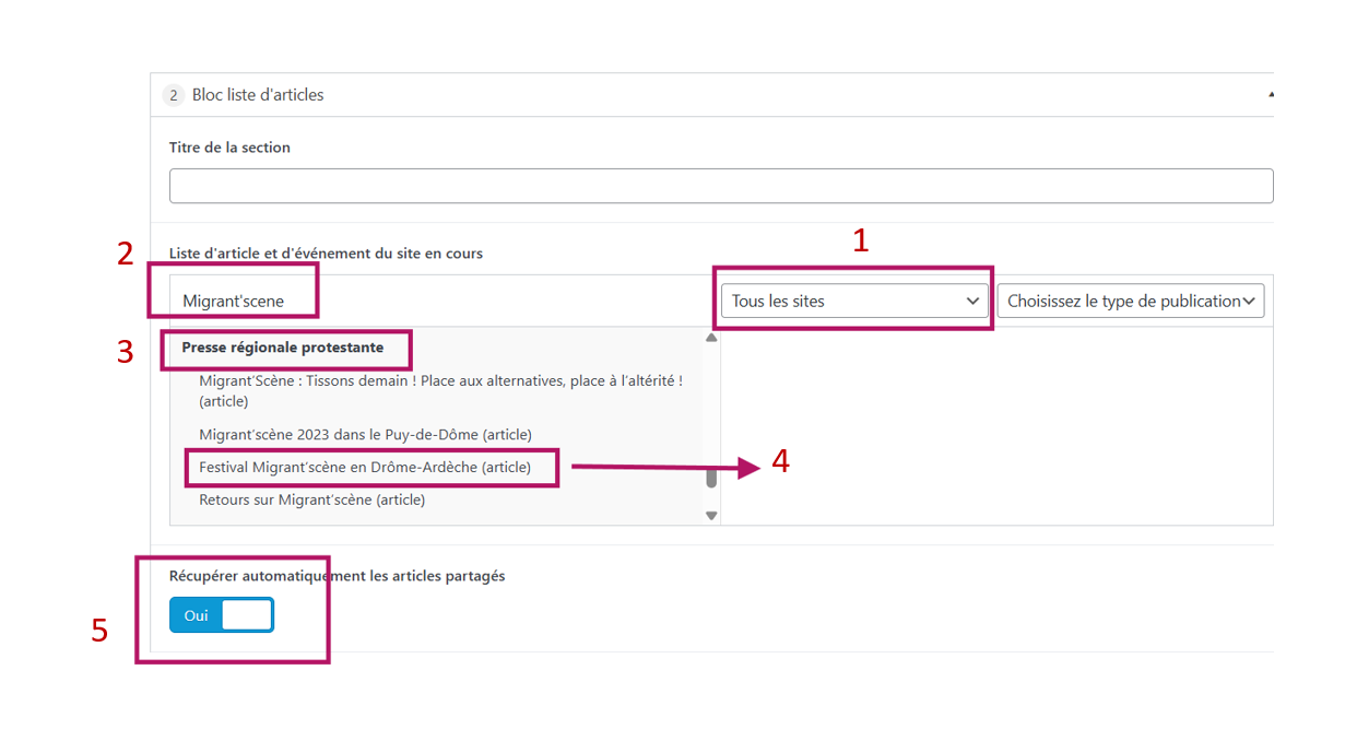 Pour rappel, cette option était déjà disponible pour les articles du site national et des sites régionaux, dans le bloc « liste d’articles ».