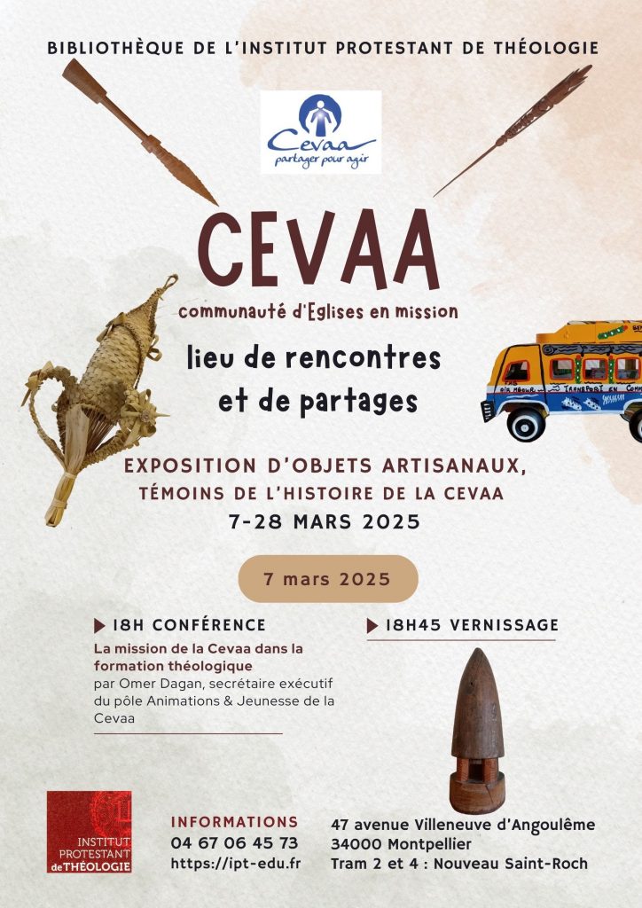 Juste avant le vernissage le 7 mars, à 18h, Omer Dagan, secrétaire exécutif du pôle animations et jeunesse de la Cevaa et pasteur, présentera le rôle de la Cevaa dans la formation théologique.