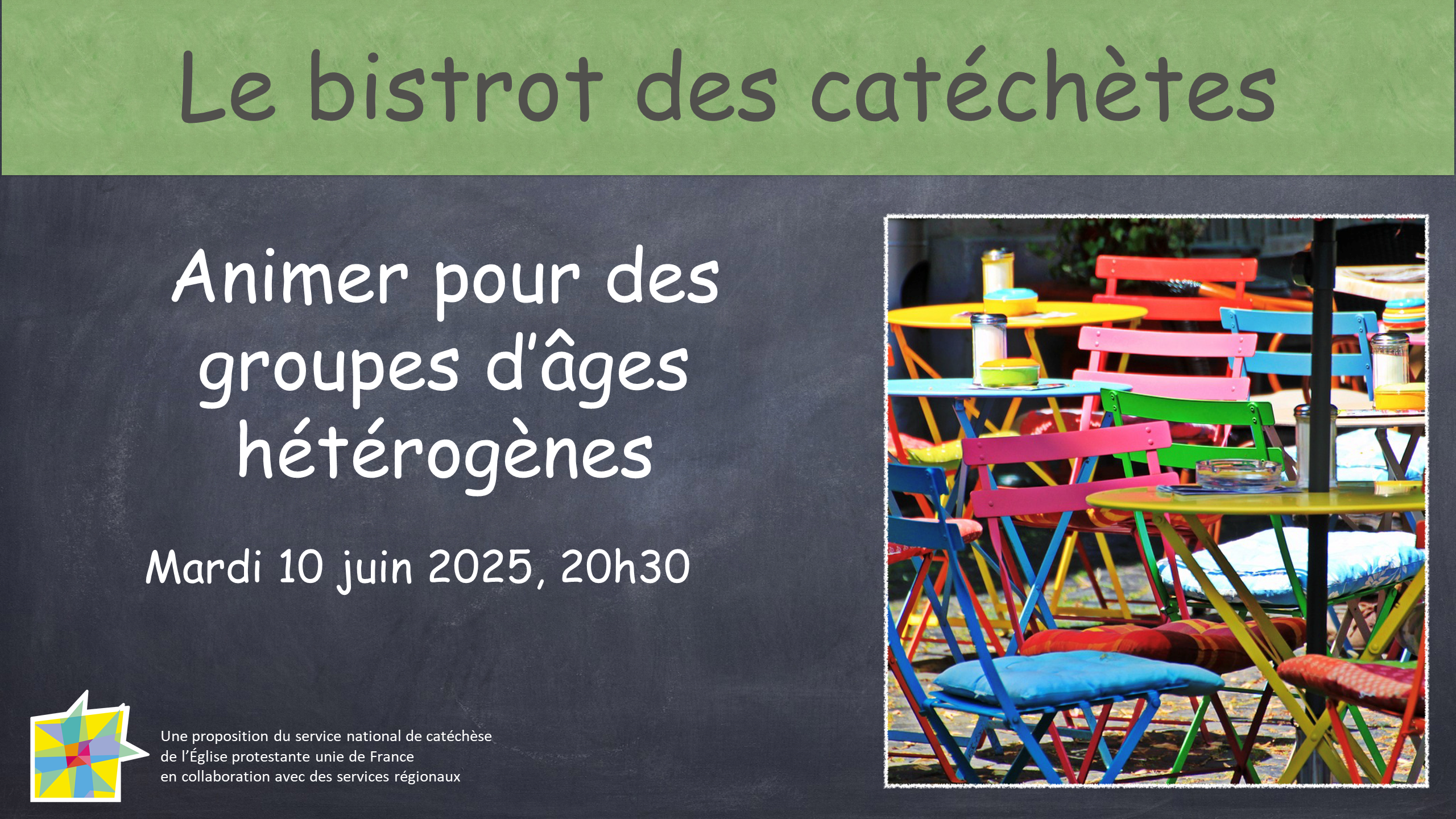Le bistrot des catéchètes est une rencontre en visioconférence proposée par le service national de catéchèse et les équipes régionales de catéchèse. Nous nous y retrouvons comme au bistrot (ou presque !) pour échanger sur une thématique donnée.